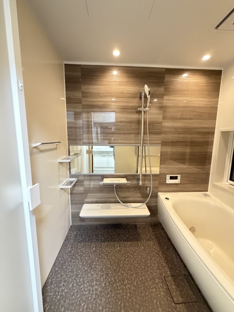 №66 まるでホテルのような癒しの浴室空間 N様邸 建築地 豊田市 建築種別 戸建 建築概要 木造 場所 浴室・洗面室 費用 240万 工期 10日 お客様のご要望 大きな窓とタイルから冷っと冷たさが伝わるお風呂がだいぶ古くなってきたので快適に変えたいとのご要望でした。 プランニング 冬場は大きな窓やタイルから冷気が伝わり寒さが気になる浴室でした。あたたかさと快適さを重視し、ユニットバスへリフォーム。まるでホテルのようにくつろげる、癒しの浴室空間へ生まれ変わりました。 照明は調光タイプを採用し、時間帯や気分に合わせた明るさに。あわせて窓のサイズを小さくし、断熱性の高いサッシへ入れ替えることで、熱の出入りを抑えています。 浴室と同時に洗面室もリフォーム。長く使われてきた戸棚は引き続き大切に使用しつつ、機能性向上と内装の一新で快適な洗面空間となりました。 使用機器 材料 ユニットバス TOTO サザナ 洗面台 TOTO Vシリーズ 内装 サンゲツ 補助金